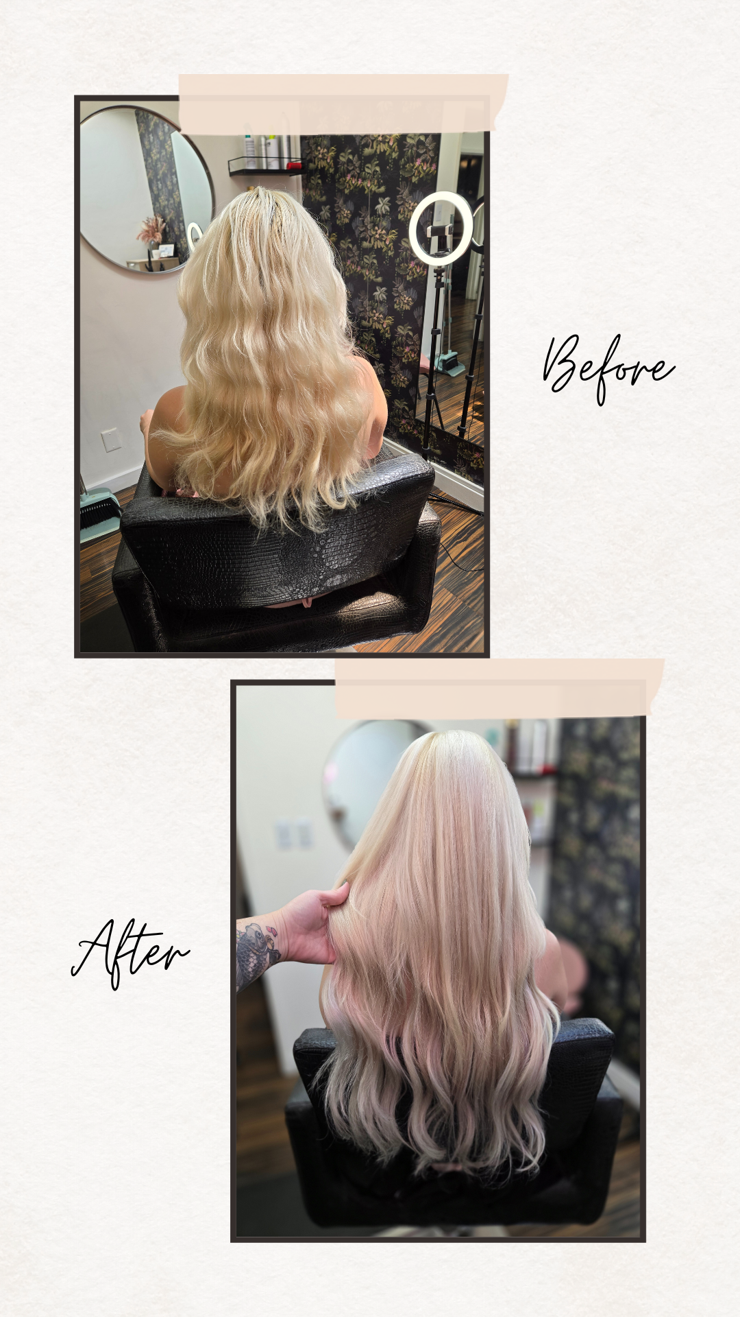 This service is designed for clients who want to add noticeable length to their natural hair. Using two packs of hair lingerie hair extensions, I’ll create a customized blend that gives you longer hair while maintaining a seamless, lightweight feel. Whether you’re looking to extend short hair or add a few extra inches, this is the perfect way to achieve a natural, healthy-looking result—without compromising the integrity of your own hair.